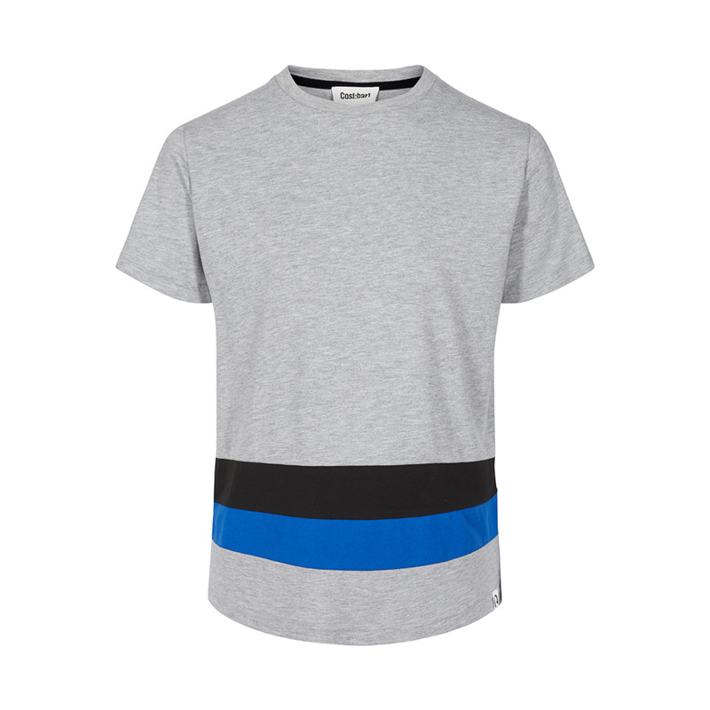 Cool drenge t-shirt fra Cost:bart. T-shirten er gråmelange med en sort og kobolt blå nederst. 65% Bomuld, 35% Polyester XS=8 år S=10 år M=12 år L=14 år (Læs mere)