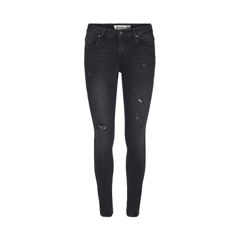 Klassiske sortvaskede jeans med power stretch, smalle ben og lav talje. Snydelommer foran og to baglommer. Der er slid foran på buksen som giver et rot look. Str 21: 8 år Str 22: 9 År Str 23: 10 år Str 24: 11 år Str 25: 12 år Str 26: 13 år Str 27: 14 år 9 (Læs mere)