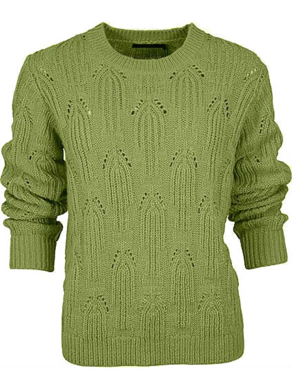 Ofelia Magrete strik bluse med rund hals og lange ærmer. Strikken har fint hulmønster og ribkant i ærmer og forneden. 80 % akryl og 20 % nylon. Vask ved 30 grader. Max krymp 5 %. (Læs mere)